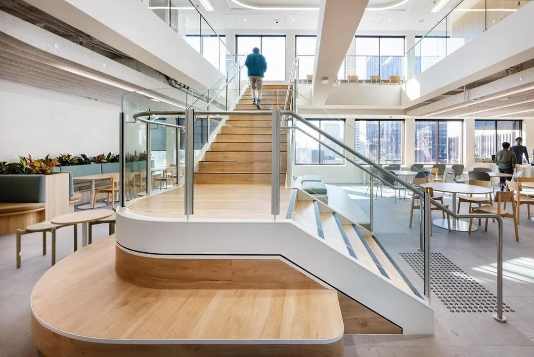 9 levels of office space (16,000 m2) refurbished in contemporary and playful spaces
